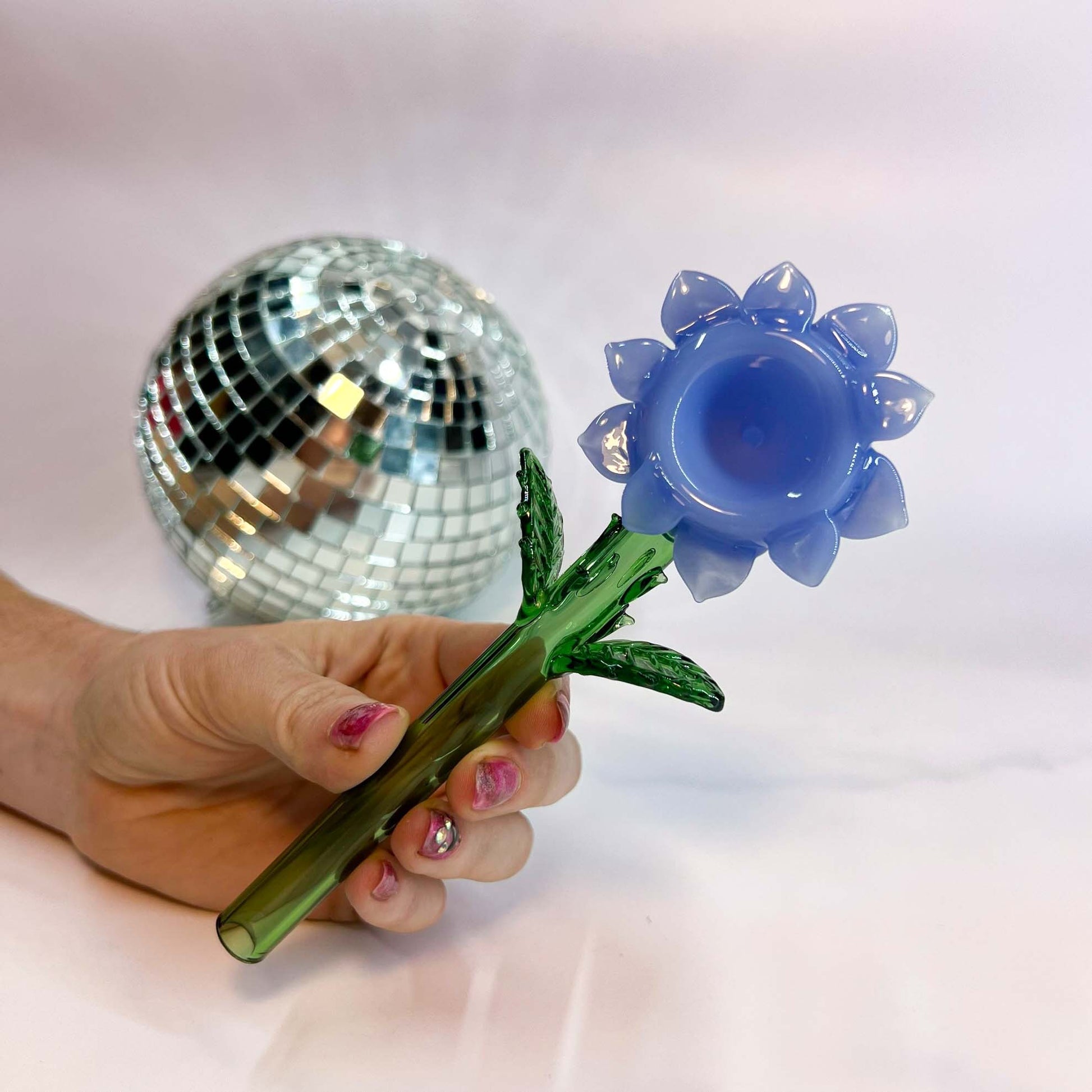 Everybody say flower power! This pipe is a joy to behold, a lovely handmade blue flower is sure to brighten your day.