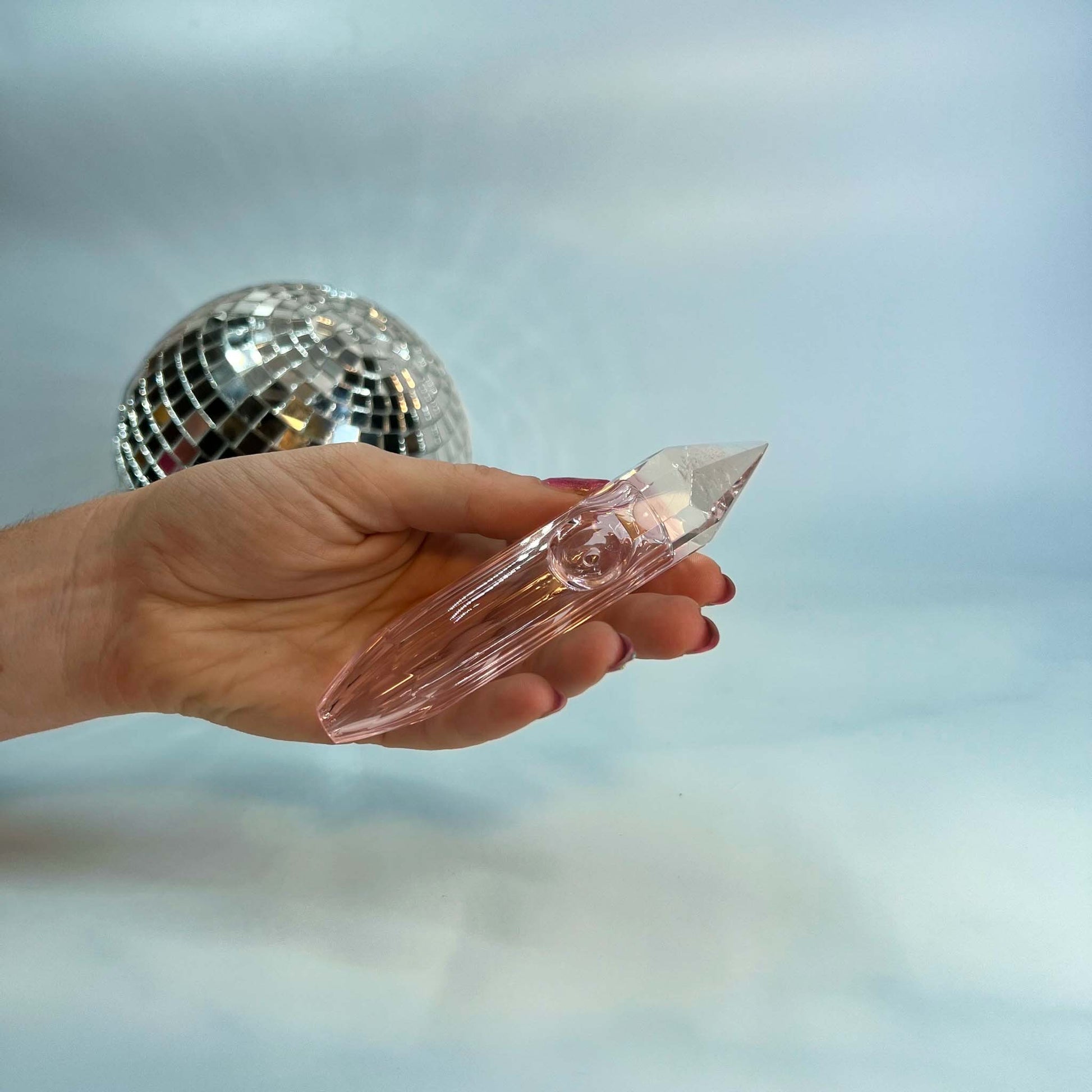The most magical pink crystal pipe you ever did see. Pack this bad boy with your favorite concoction and start to feel the effects of this charming little handmade piece.